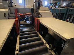 Sierra de cinta Istech 431 NC, año 2007, capacidad de corte en redondo 430 mm, capacidad de corte en cuadrado 430x430 mm, carrera de corte 500 mm, potencia del motor de la sierra 5,5 kW. Dimensiones: 240x260x260(h) cm, Peso 3500 kg.